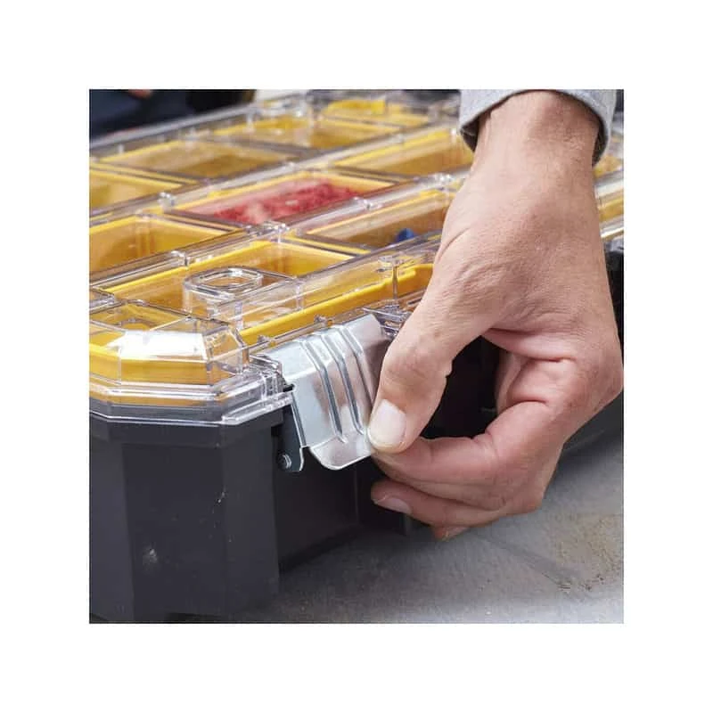 La mallette organiseur Toughsystem de Stanley Fatmax est fournie avec 10 godets amovibles dont 2 grands ,2 longs et 6 petits.