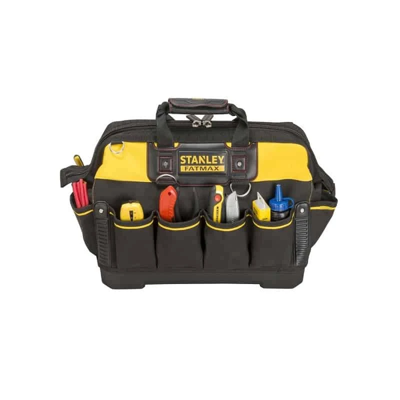 Conçu pour durer grâce à sa base rigide résistante à l’eau et sa structure métallique, le sac à outils 1-93-950 STANLEY FatMax est équipé d’une poignée surpiquée et renforcée avec une enveloppe caoutchoutée.