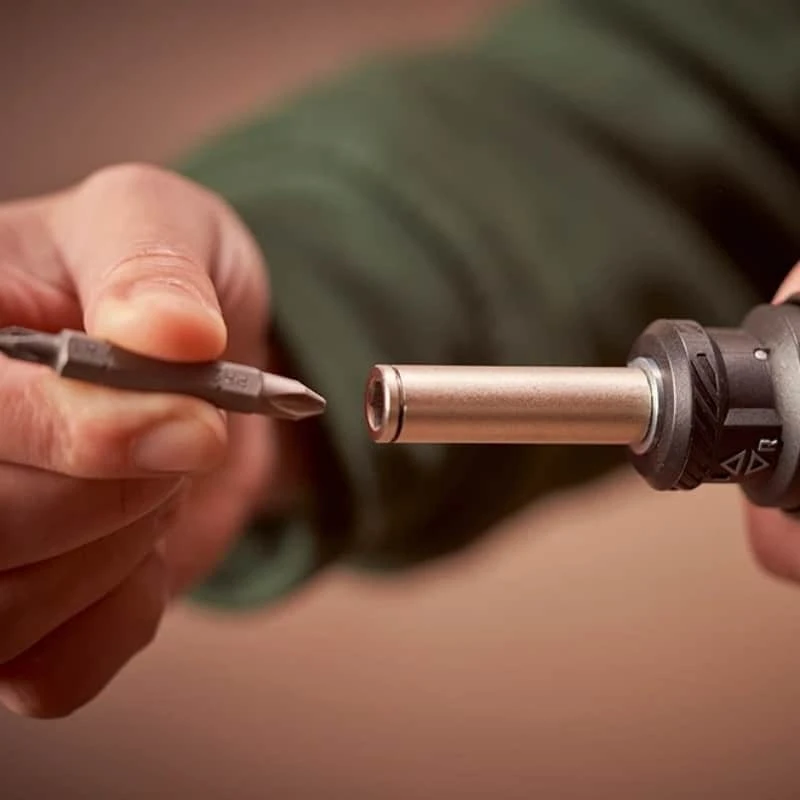 L’inverseur de vissage / dévissage se tire facilement et rapidement, de plus, la zone de préhension est crantée afin d’accélérer le mouvement.