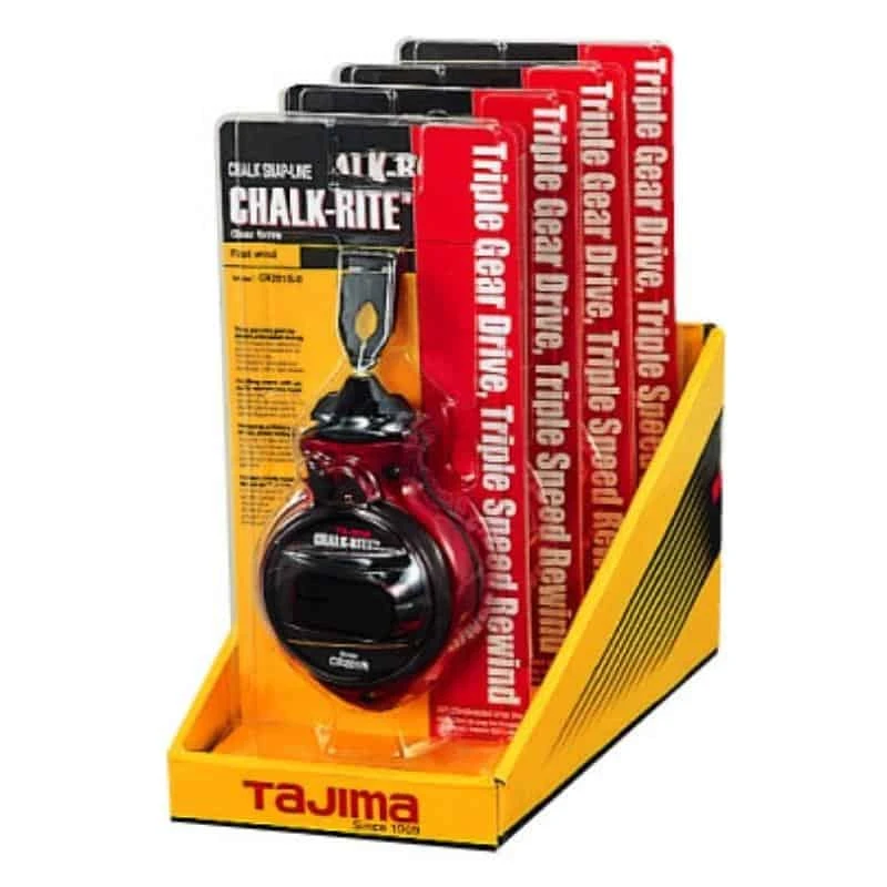 Le cordeau traceur CR201R de Tajima possède une capacité de longueur de 25m et 5 vitesses. Doté d’un boîtier en aluminium étanche, le cordeau traceur à poudre possède un fil tressé de 1 mm ultrarésistant qui s’enroule facilement.