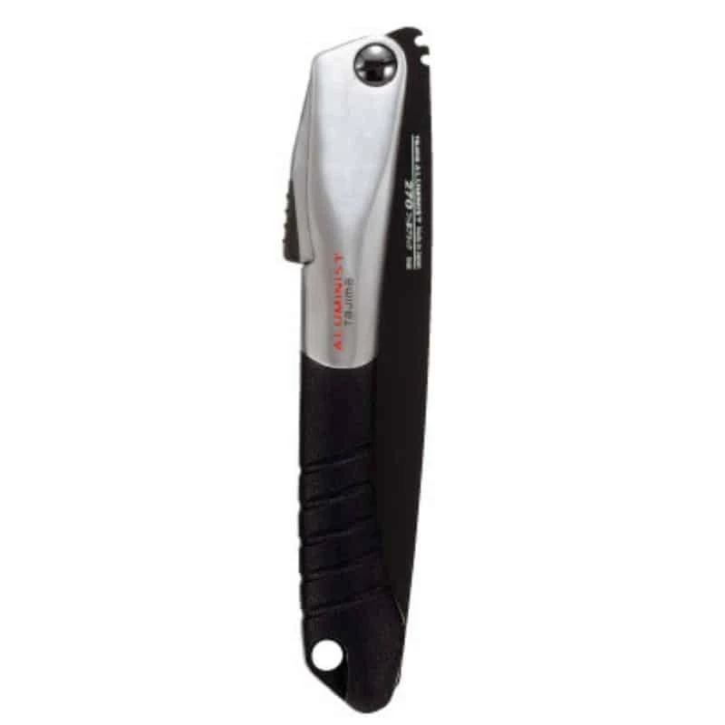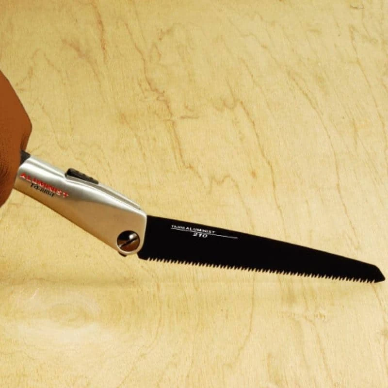 Les scies japonaises de Tajima sont pliables et peuvent s’utiliser sur deux positions d’ouverture afin de dégager votre main des surfaces à couper. La poignée en aluminium est gainée en élastomère. La lame est de première qualité 9 TPI en acier trempé et avec un revêtement Fluoro-Coat.