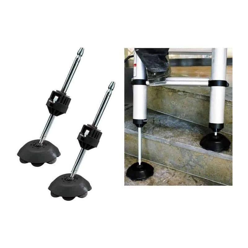 Astucieux: les pieds de sécurité réglables et antidérapants Telesteps permettant de poser une échelle dans un escalier pour compenser la dénivellation – Trouver une bonne position de travail sur une échelle dans un angle n’est plus impossible ! L’échelle telescopique dispose ainsi d’un appui parfait contre les murs, les poteaux, les arbres…