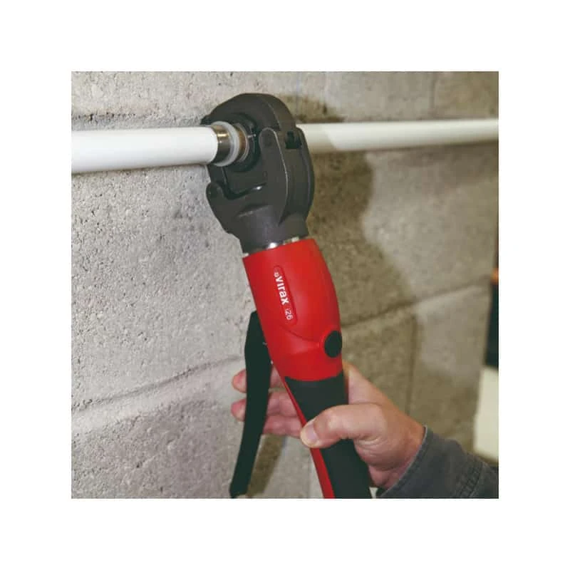 Ergonomique et peu encombrante, la presse Viper® i26 de Virax permet de sertir des matériaux jusqu’au Ø 26 mm en multicouche. Clic audible en fin de sertissage lorsque la force de pression maximale est atteinte.